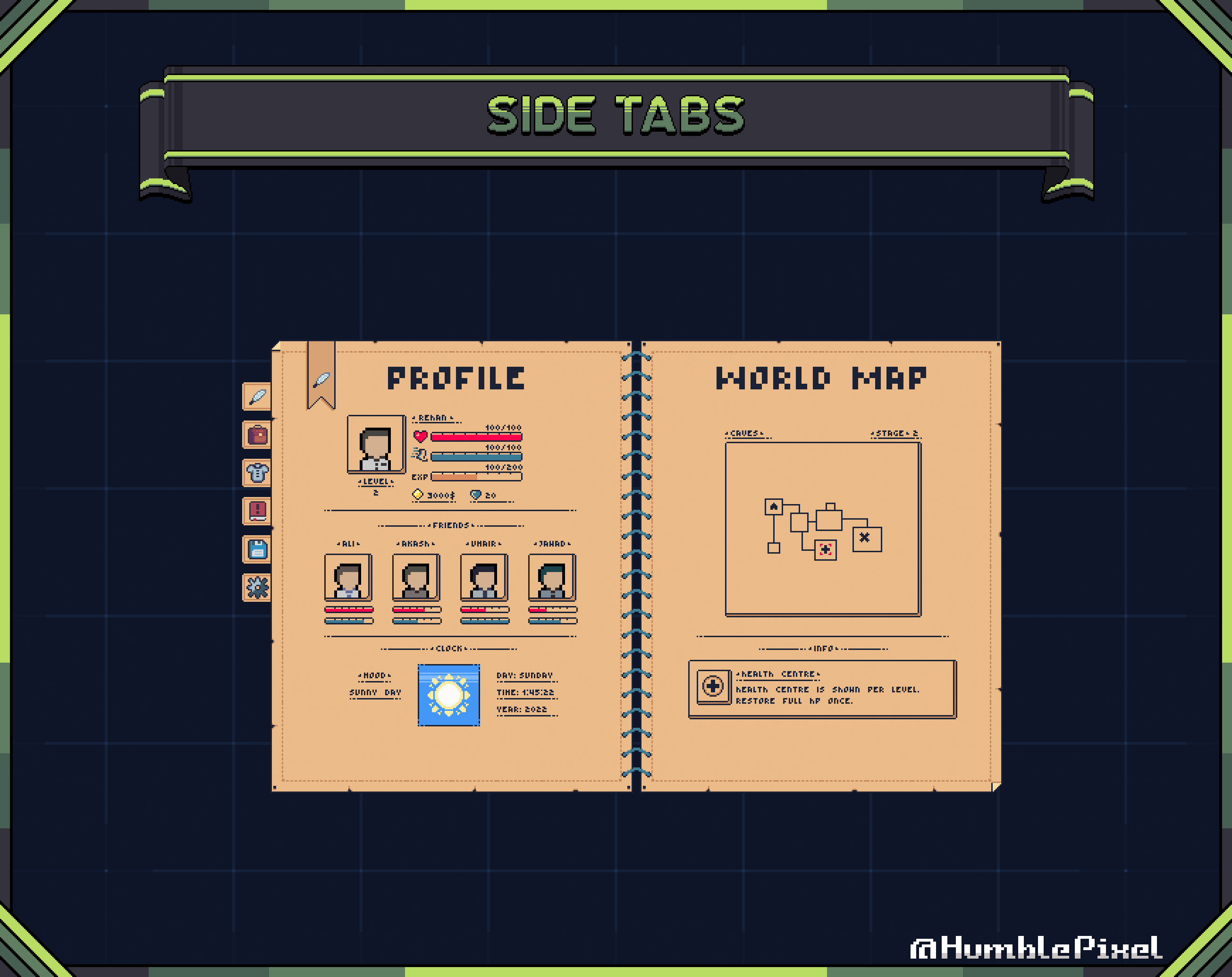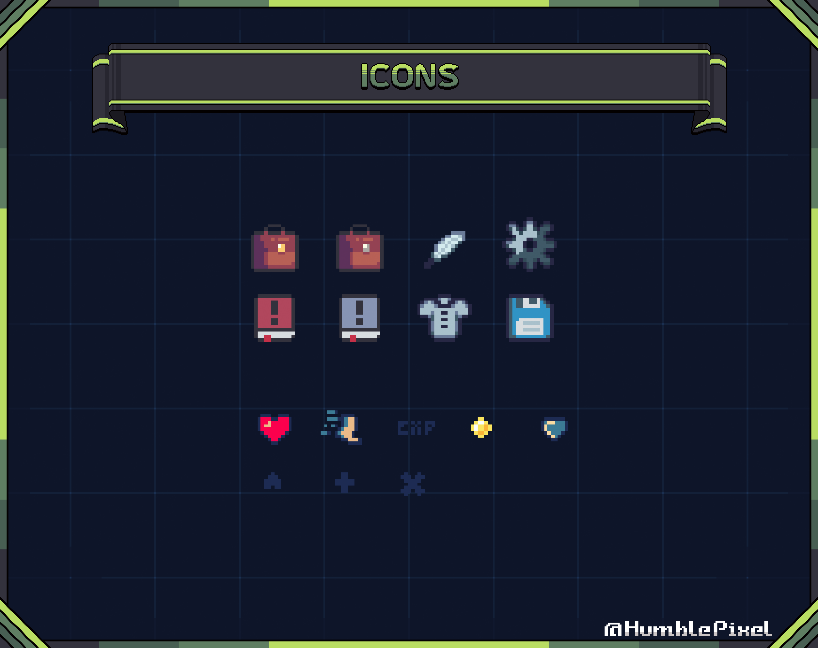 | Tags | 16x16, 2D, Asset Pack, Graphical User Interface (GUI), humblepixelofficial, Pixel Art, PNG, Retro, Sprites, User Interface (UI) |