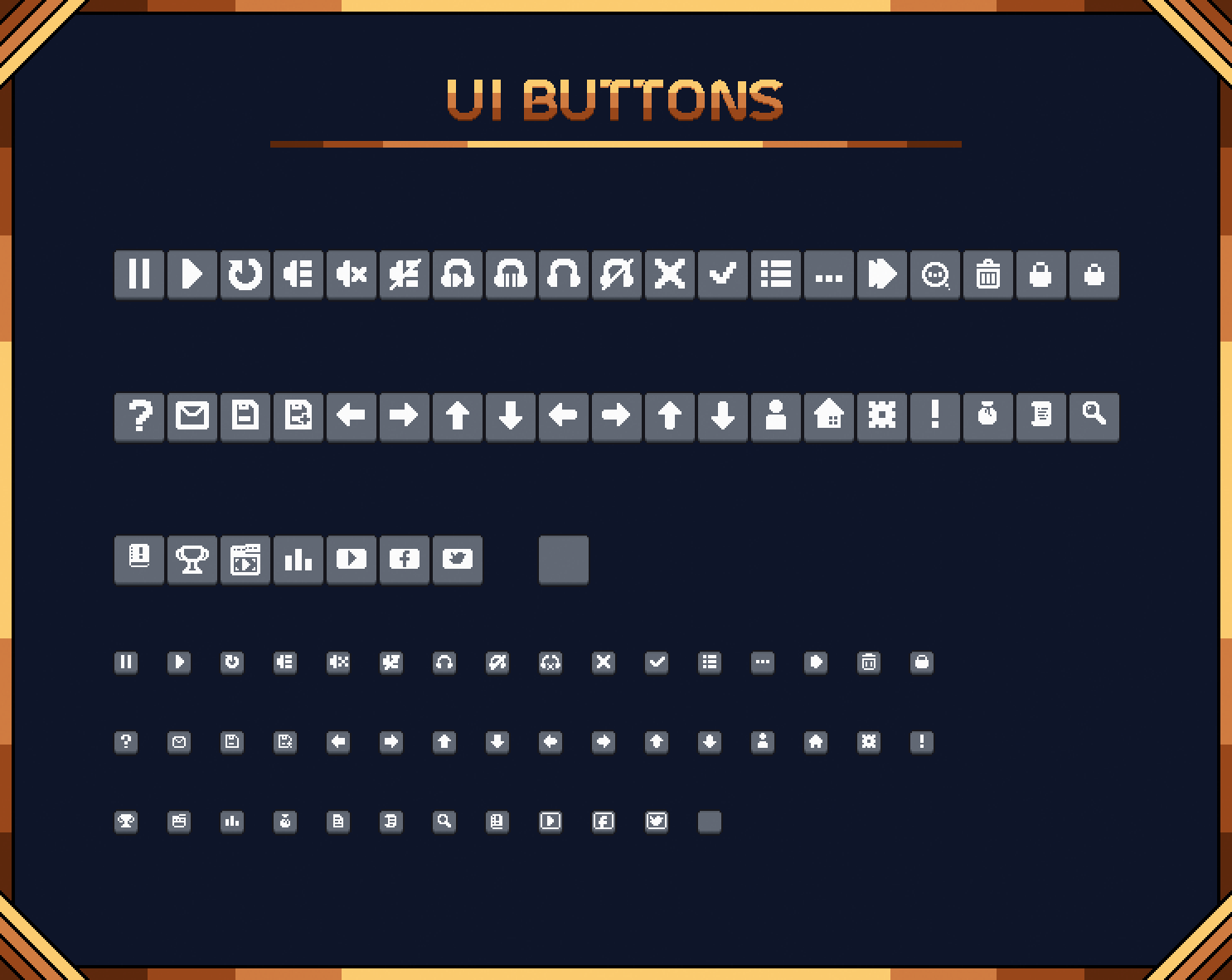 Perfect for any project needing a detailed hand-crafted pixel art interface.