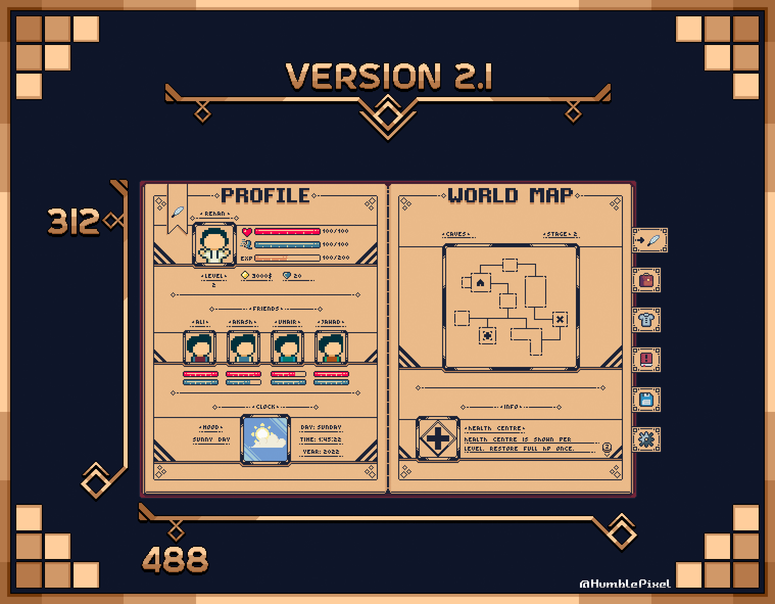 | Tags | 16x16, 2D, Asset Pack, Graphical User Interface (GUI), humblepixelofficial, Pixel Art, PNG, Retro, Sprites, User Interface (UI) |